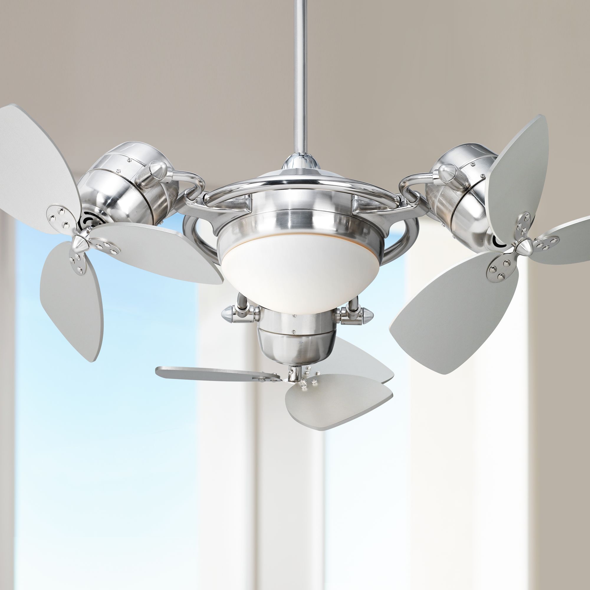 Euro Ceiling Fans / Euro Fans Neptune Ceiling Fan 44 inch Brushed Nickel with ... : This great looking unit features three fan heads and a frosted glass downlight.. A thoroughly modern ceiling fan design. Sign in or create an account. This great looking unit features three fan heads and a frosted glass downlight. It is another company with positive reviews and they love its modern look. We are one of the uk's oldest & most extensive stockists of fantasia fans & offer the complete range, ready to ship.